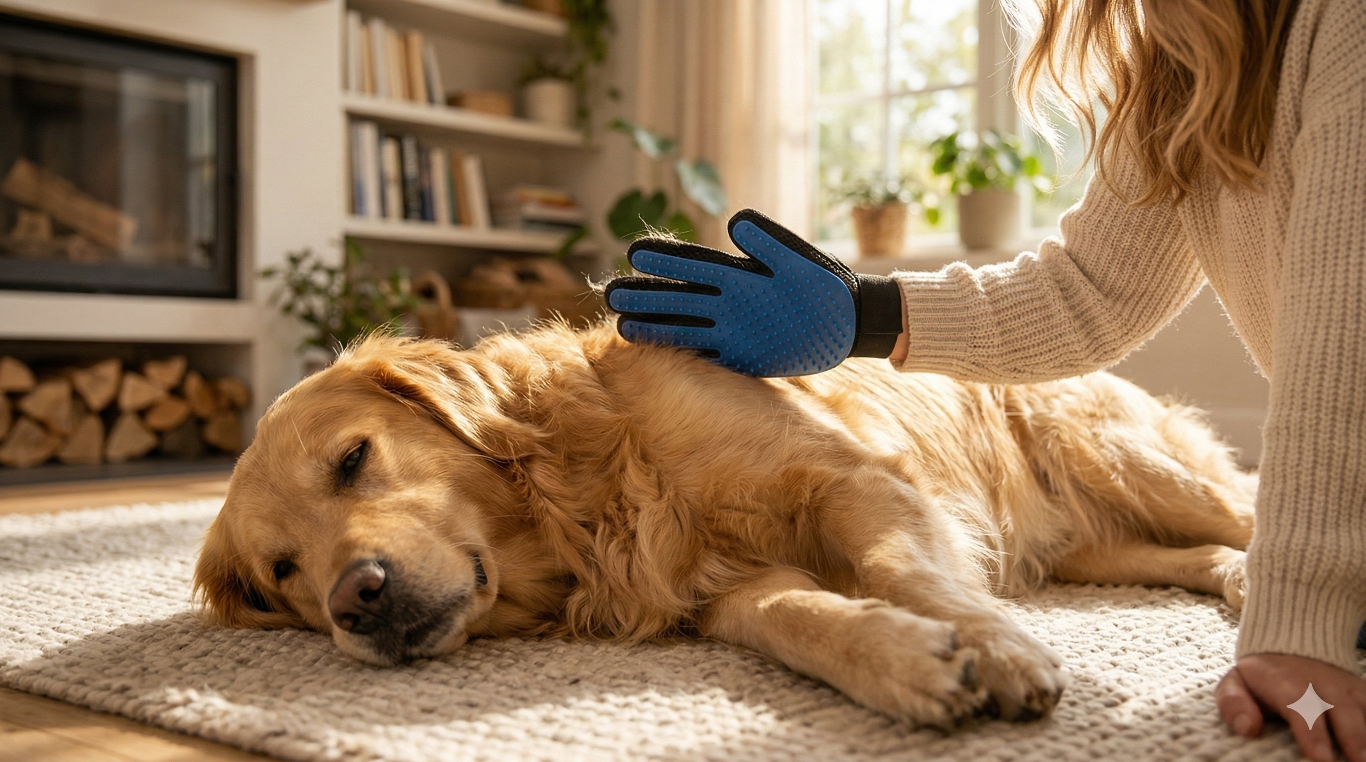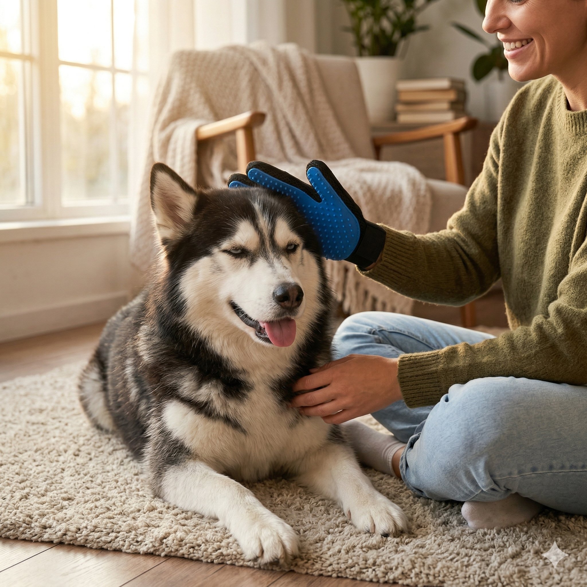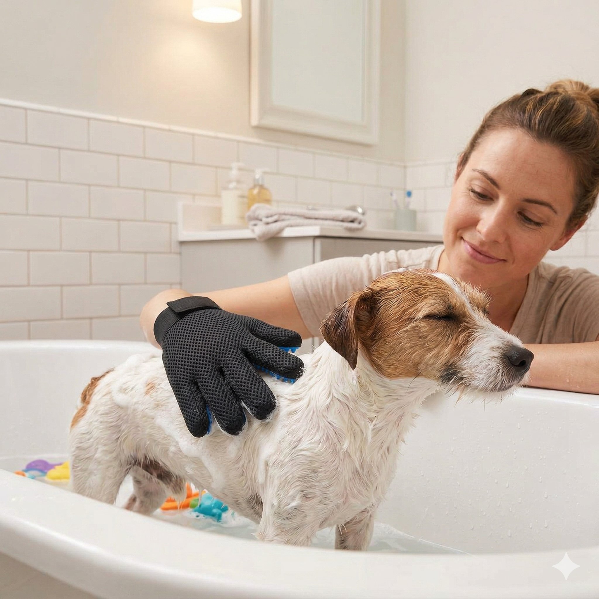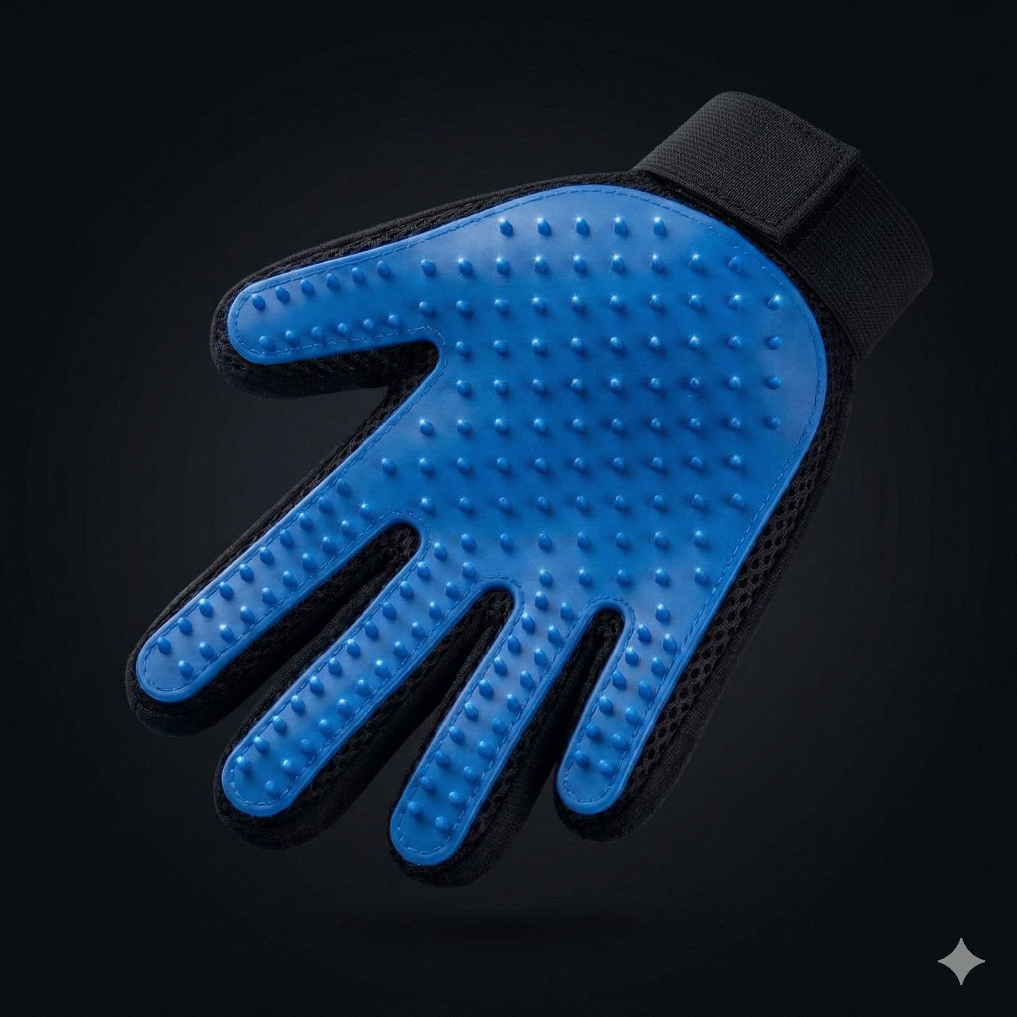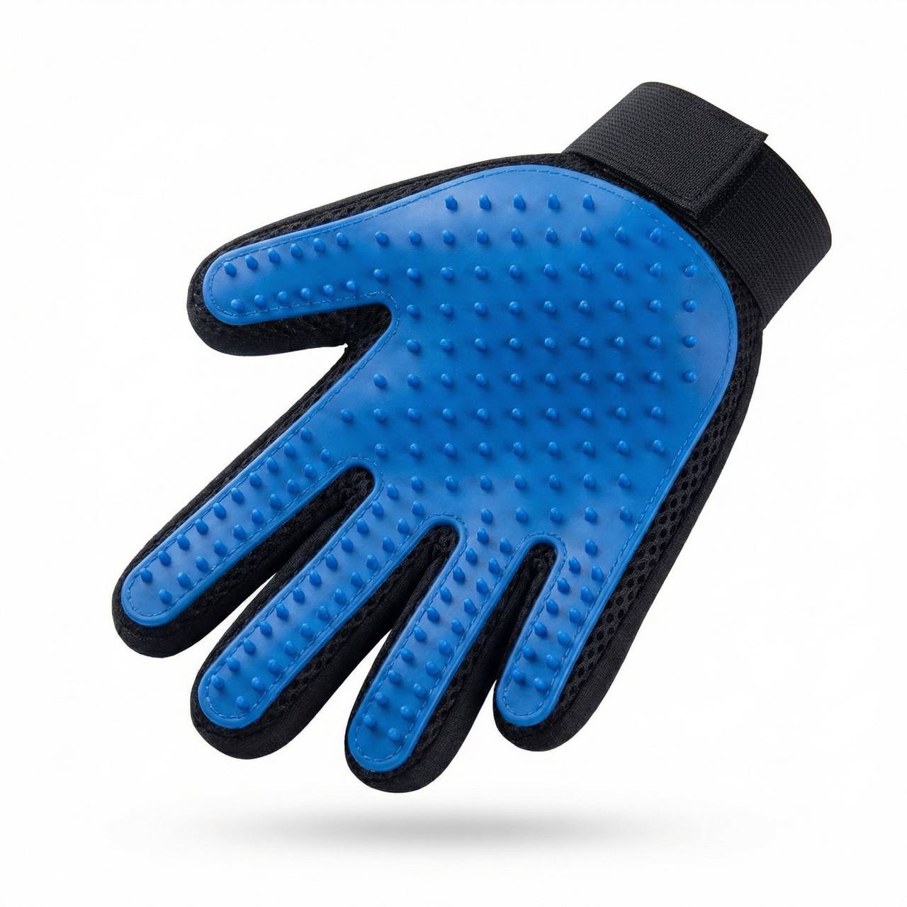This gentle grooming glove fits over your hand like a mitt, turning brushing time into bonding time. Soft silicone tips massage your pet's skin while catching loose fur, dander, and tangles — no stress, no fuss.